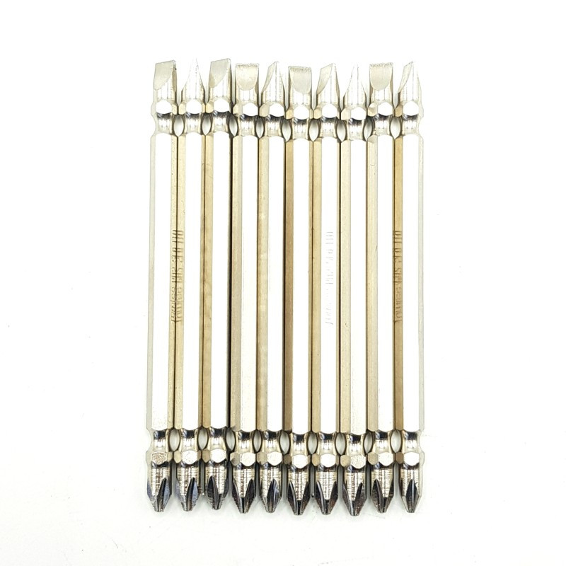 • توضیحات تعداد: ۱۰ عدد نوک پیچگوشتی یکسر دو سو و یک سر چهار سو در یک بسته ارسال می گردد